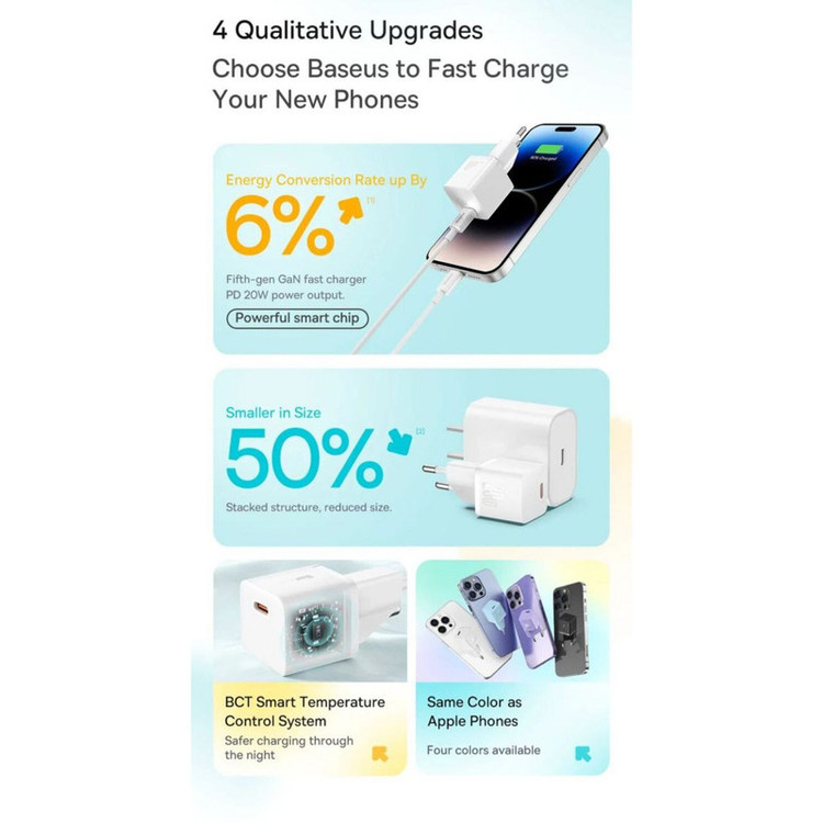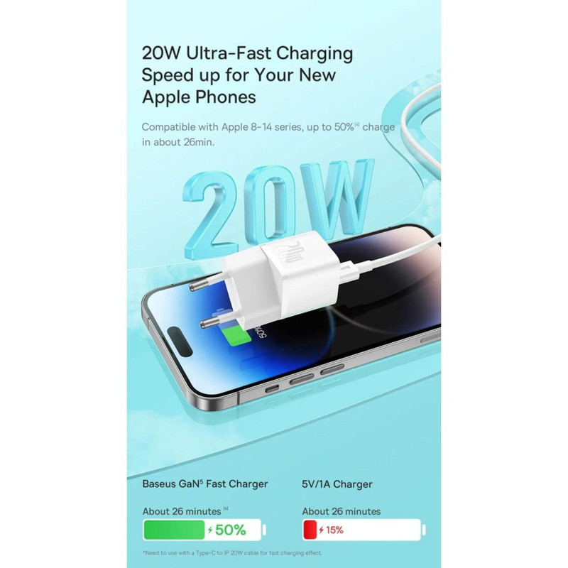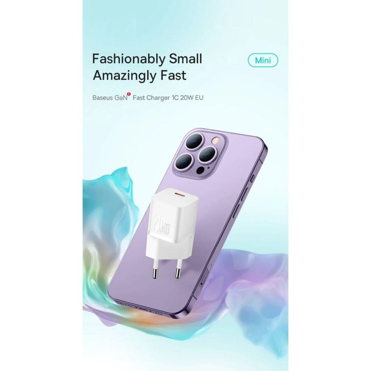 شارژر دیواری Baseus مجهز به فناوری GaN است که استفاده از آن را راحت می کند. اگرچه اندازه جمع و جور آن ممکن است شما را شگفت زده کند، فریب نخورید. این شارژر با وجود اندازه کوچکش، قدرت واقعی را پنهان می کند. با 20 وات قادر است گوشی شما را تنها در 26 دقیقه تا 50 درصد شارژ کند. برای کسانی که از کارایی و عملی بودن قدردانی می کنند عالی است. این شارژر گواه این است که قدرت فوق العاده می تواند در یک بسته کوچک جا شود.
