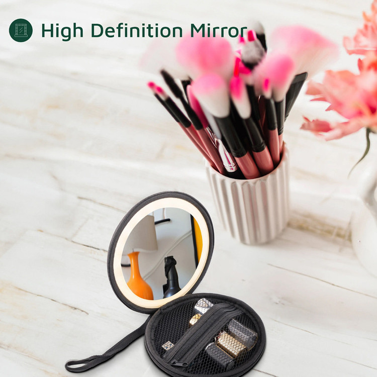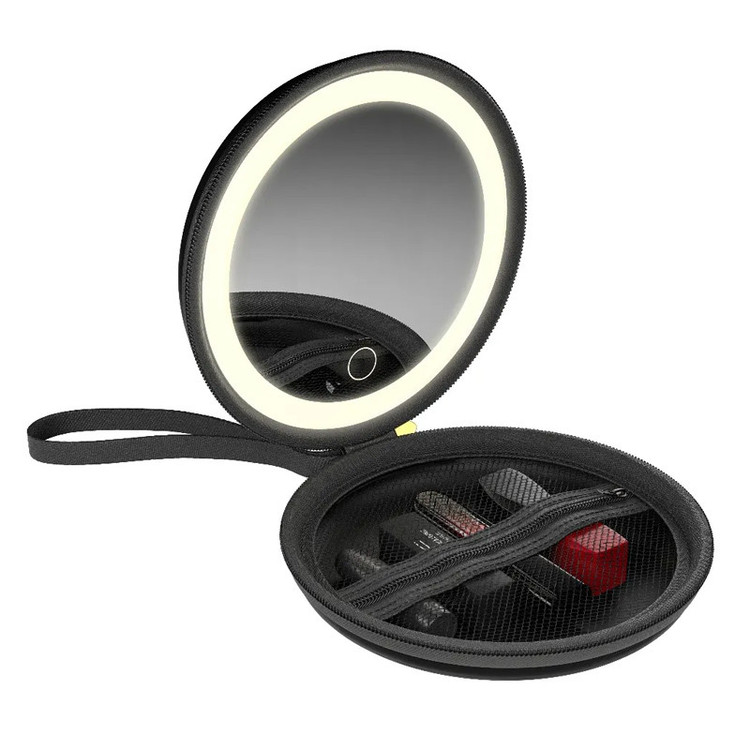کیف لوازم آرایشی با طراحی آینه چراغ دار در سه حالت سفید، گرم و طبیعی | دارای ابعاد 4.3*14.65*14.65 سانتی متر
