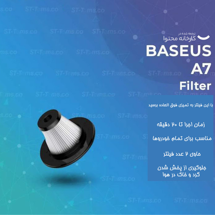 سایر توضیحات: مناسب جارو شارژی ماشین بیسوس مدل A7 با کدهای VCAQ020213 و VCAQ020013 | جلوگیری از پخش شدن گرد و خاک در هوا | حاوی 2 عدد فیلتر