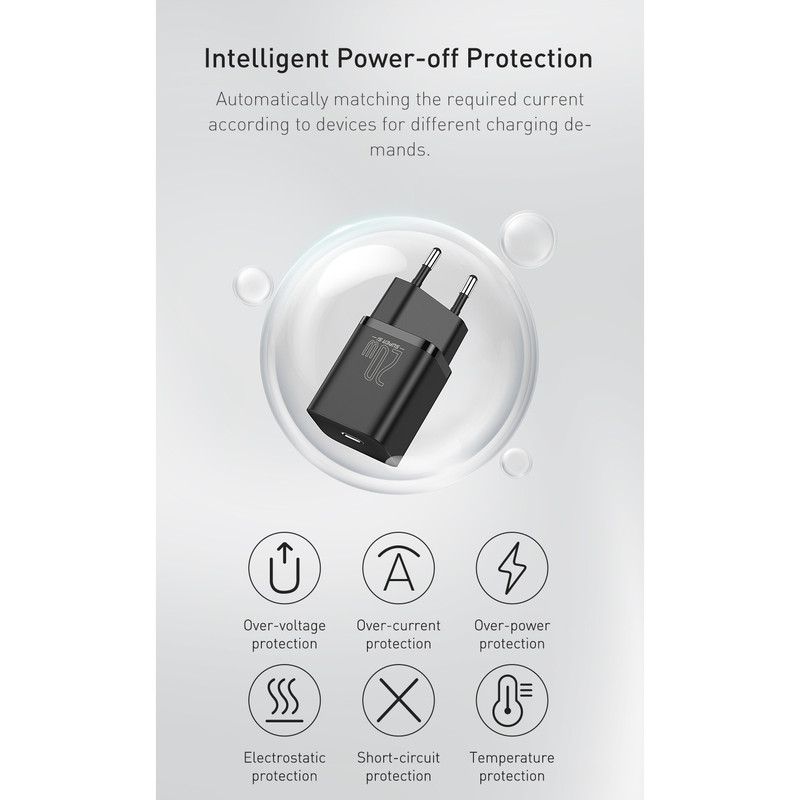 توان خروجی کلی آداپتور فست شارژ بیسوس CCSUP-B01 برابر با 20W میباشد که میتواند سری اپل آیفون 12 را با همین توان و سری آیفون 11 و قبل را با توان 18W شارژ کند. این تشخیص چگونگی کاهش توان به واسطه تکنولوژی محافظتی Power-Off بیسوس انجام میشود تا باتری گوشیها به طور خودکار تنها توانی که برایشان قابل تحمل است را دریافت کنند و صدمه نبینند.