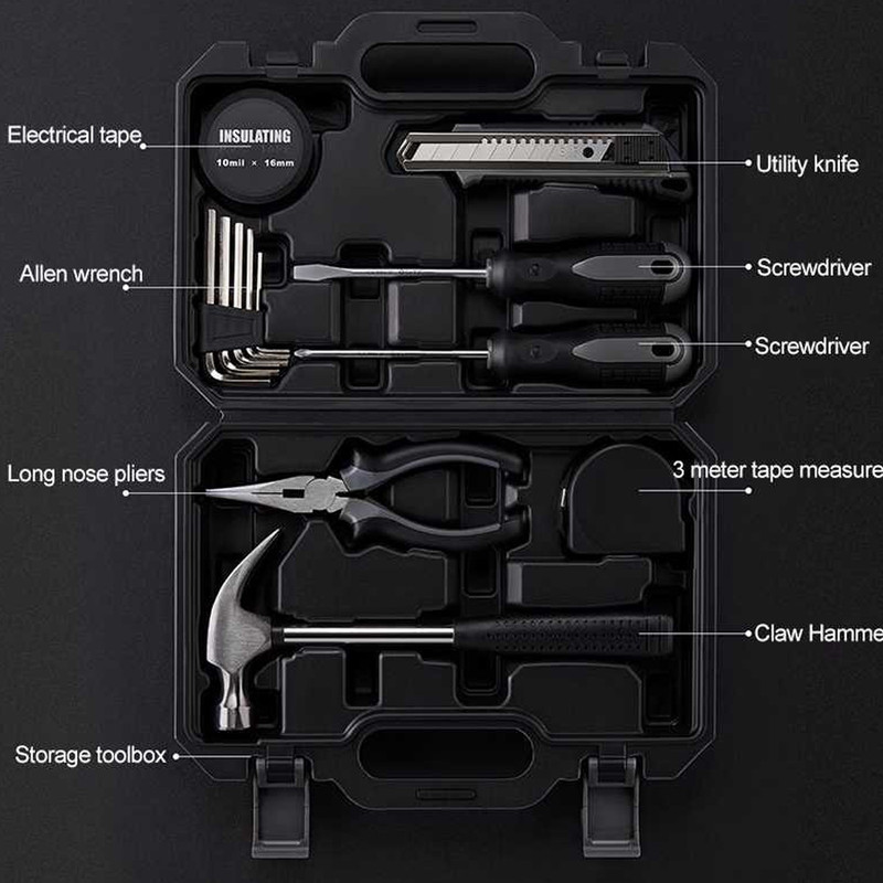محتویات مجموعه: آچار آلن , انبر دم باریک , پیچ گوشتی , چسب , چکش , کاتر , متر