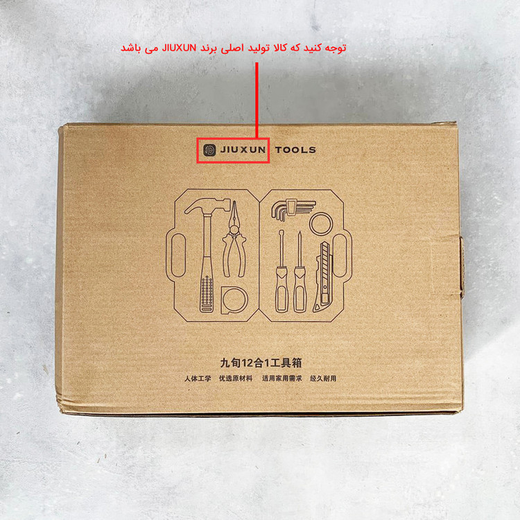 توضیحات تکمیلی مجموعه ابزار: در داخل باکس مجموعه 12 عددی ابزار مدل JIUXUN ، یک چکش، یک پیچ گوشتی، یک دم باریک، یک متر اندازه گیری با طول 3 متر، یک کاتر، 5 عدد آچار آلن، یک پیچ گوشتی دو سو و یک چسب برق قرار دارد که در شرایط مختلف می توانید از آن ها استفاده کنید.