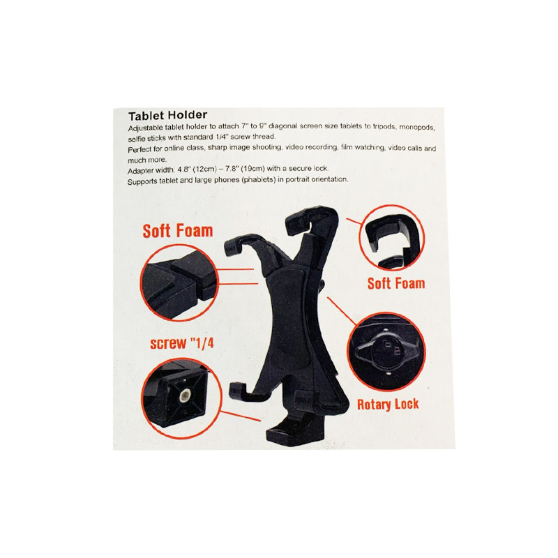 مشخصات: کیفیت ساخت بالا | نگهدارنده برای انواع تبلت و یا آیپد از سایز 12 سانتی متر در حالت بسته و سایز 19 سانتی متر در حالت باز