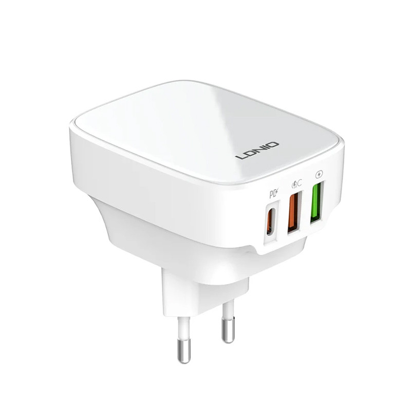 در دنیای امروز که تکنولوژی نقش مهمی در زندگی انسان ایفا می کند، داشتن لوازم جانبی مناسب و دستگاه های الکترونیک، یک نیاز اساسی است. برند الدینیو که همواره لوازم جانبی با کیفیت و قابل اعتماد برای گوشی های هوشمند، تبلت ها، لپ تاپ ها و سایر دستگاه های الکترونیکی تولید می کند، به تازگی محصولی تحت عنوان شارژر دیواری 32 وات الدینیو مدل Q334 را طراحی، تولید و به بازار عرضه کرده است. استفاده از شارژر با کیفیت خیال شما را در رابطه با سلامت وسایلتان راحت خواهد کرد. بدنه شارژر دیواری الدینیو از ABS ساخته شده و با توجه به ابعاد کوچک و وزن کمی که دارد به راحتی قابل حمل است. این شارژر دیواری دارای 1 پورت Type-c (PD) و 2 درگاه USB است و که یکی از آن ها قابلیت (QC) دارد. توان خروجی کلی این شارژر برابر با 32W وات است و توان هر پورت به تفکیک عبارتند از درگاه Type-c مجهز به فناوری PD با حداکثر توان 20 وات، درگاه USB نارنجی رنگ مجهز به فناوری QC3.0 با حداکثر توان 18 وات و درگاه USB سبز رنگ مجهز به فناوری Auto-ID با حداکثر توان 12 وات است. همچنین استفاده همزمان از درگاه Type-c و درگاه Auto-ID USB در مجموع حداکثر توان 18 وات دارد و به طور کلی اگر از درگاههای این شارژر به طور همزمان استفاده کنید، مجموع توان خروجی 32 وات خواهد بود.
