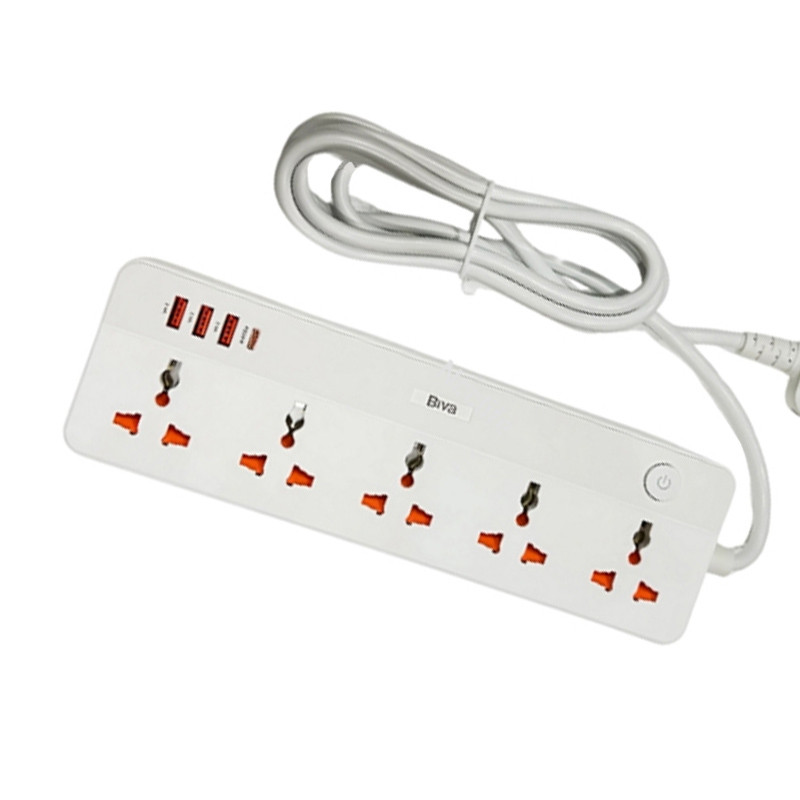 مناسب دوشاخههای EU و US و UK | طراحی شیک و جذاب | دارای دکمه خاموش و روشن | بدون تداخل پریز ها | کابل 2 متری با کیفیت | دارای سه پورت usb و یک پورت type-C