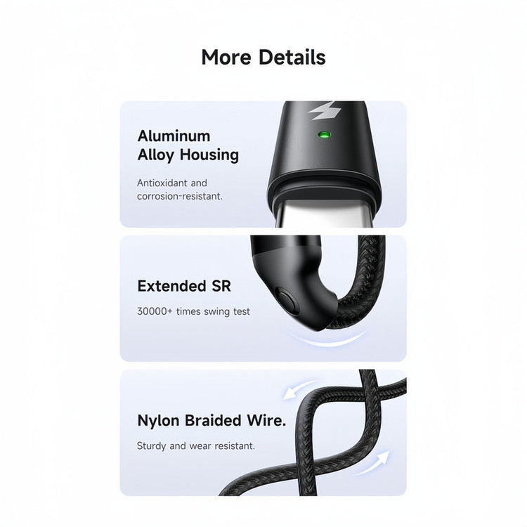 جنس کابل: آلیاژ آلومینیوم/نایلون بافتهشده/ TPE مقاوم