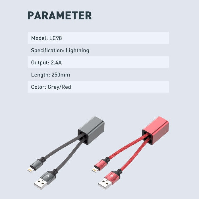 دارای بند آویز طول کابل: 25 سانتی متر نوع رابط: USB / Lightning شدت جریان خروجی: 2.4 آمپر مقاومت بالا در برابر گره خوردن، کشش و پارگی