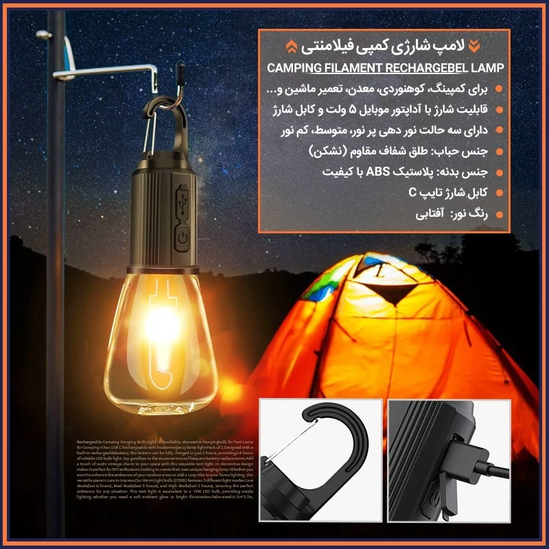 ویژگی های لامپ شارژی کمپینگ فیلامنتی :