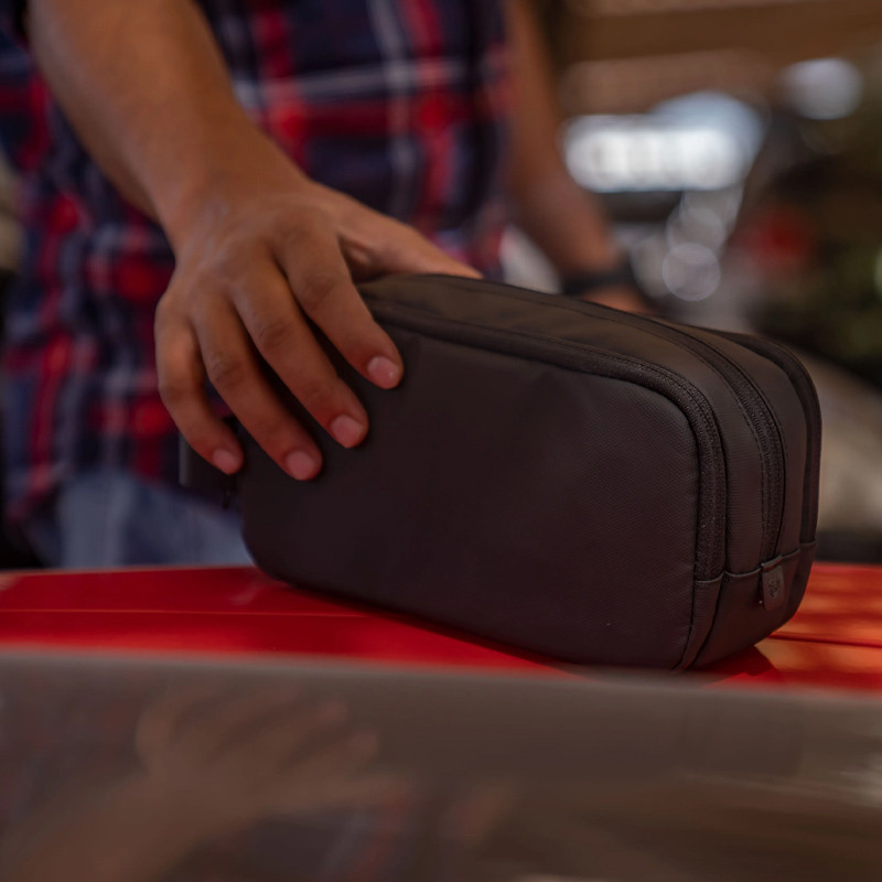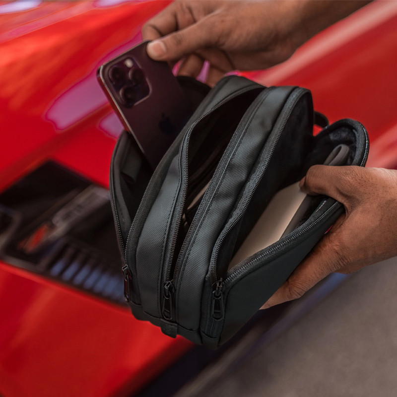 مشخصات: پوشش مقاوم در مقابل آب و گرد و غبار | دارای سه جیب | دسته قابل حمل | 600D Polyester + Leather Trim | ابعاد مناسب و وزن کم