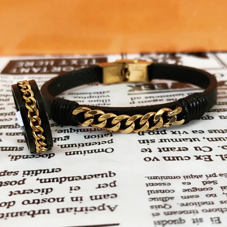 ♥ ست دستبند و انگشتر کارتیر طلایی شارژ شد♥ ✨♥ ➖➖➖➖➖➖➖➖➖ 🎀🎀مشخصات 🎀🎀 ✔️✔️ قابل سایز بندی ✔️✔️ 🎀🎀رنگ بندی🎀🎀 طلایی مشکی ✅ یک ست جذاب و بی نظیر جنس چرم مصنوعی جنس حلقه استیل😍 😍