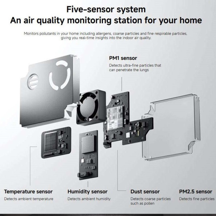 Primary filter | Xiaomi high-efficiency filter | High-quality activated carbon | UV light array | Fresh negative ions