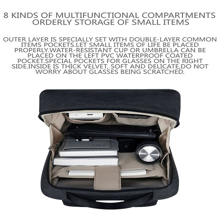 جیب بیرونی , جیب خودکار , جیب داخلی , دارای یک محفظه اصلی , محفظه نگهداری لپتاپ , جای قمقمه