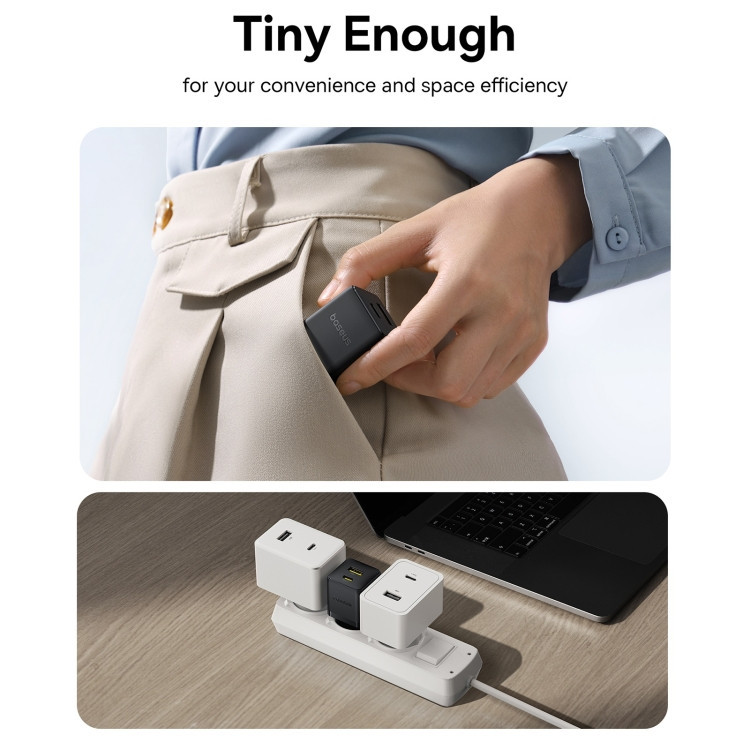 یکی دیگر از مزایای شارژر Baseus قابلیت شارژ همزمان دو دستگاه است. با یک پورت 20 واتی Type-C و یک خروجی USB 18 واتی، کاربر توانایی شارژ همزمان گوشی هوشمند و سایر گجت ها را دارد.