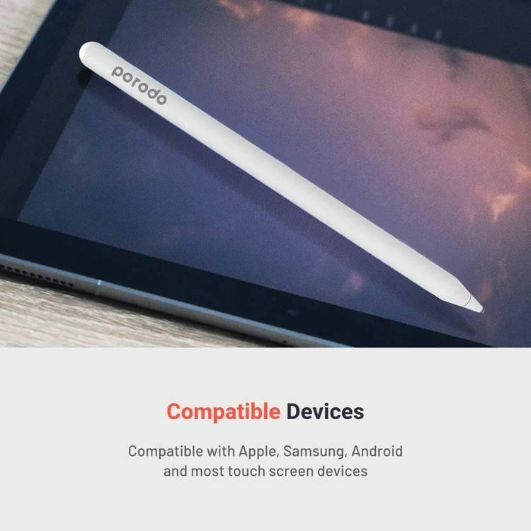 قلم لمسی جهانی پوردو برای موبایل و تبلت ابزاری شیک و همه کاره دردو رنگ سفید و مشکی است. خلاقیت و بهره وری دیجیتال شما را افزایش می دهد. نوک 1.5 میلی متری این قلم استفاده دقیق و روان را برای یادداشت ها، طرح ها و مسیریابی تضمین می کند. ویژگی دوبار ضربه زدن آسان، تغییر حالت ها را ساده می کند. اتصال مغناطیسی آن در صورت عدم استفاده، آن را ایمن نگه می دارد. این مداد دارای یک باتری 140 میلی آمپر ساعتی است که برای 8 تا 10 ساعت استفاده مداوم و یک دوره آماده به کار شگفت انگیز 30 روزه دوام می آورد. با رابط Type-C، شارژ آسان و سریع است. تنها 1.5 ساعت طول می کشد تا به ظرفیت کامل برسد. راحت و سبک است و تنها 16 گرم دارد و ابعاد آن 1.0 x 8.9 x 166 میلی متر است. مداد جهانی Porodo برای حرفه ای ها، دانش آموزان و خلاقان ایده آل است. این طراحی و عملکرد را ترکیب می کند و با بسیاری از دستگاه های تلفن همراه و تبلت ها کار می کند.