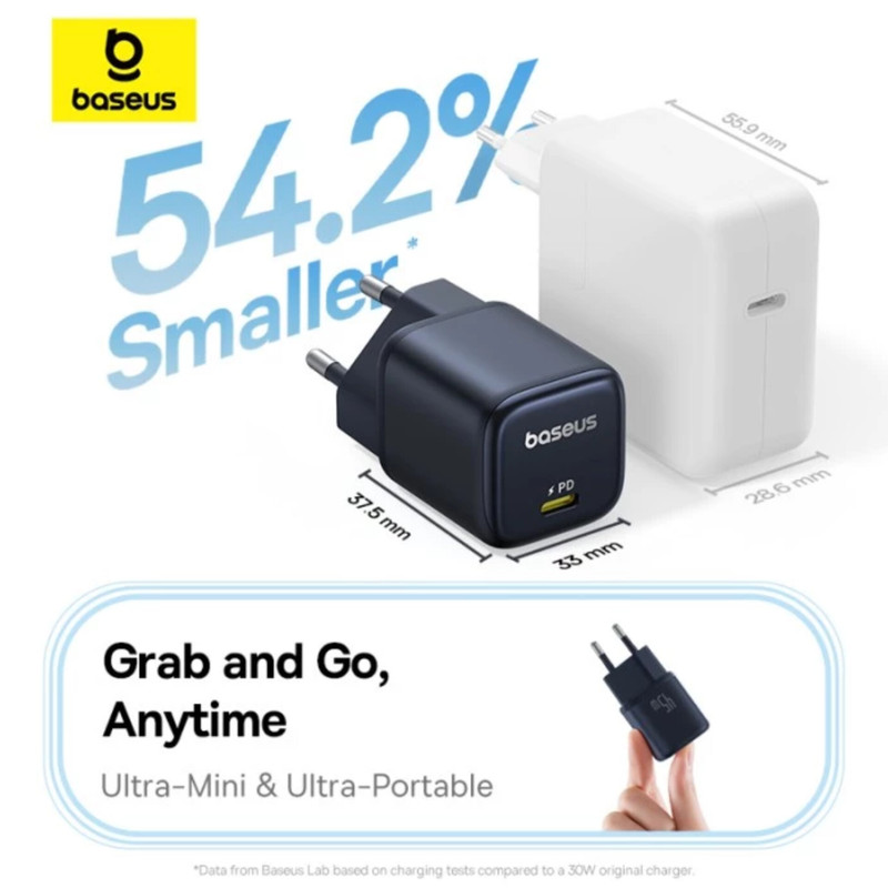 مینی و فشرده: شارژر سریع 45 واتی Baseus PicoGo 54 درصد کوچکتر از شارژر 30 واتی اصلی است. اندازه جمع و جور آن وزن اضافی برای حمل، وصل کردن و جدا کردن آن اضافه نمی کند—ایده آل برای شارژ در حال حرکت در هر مکانی. توجه: دوشاخه قابل باز شدن است.
