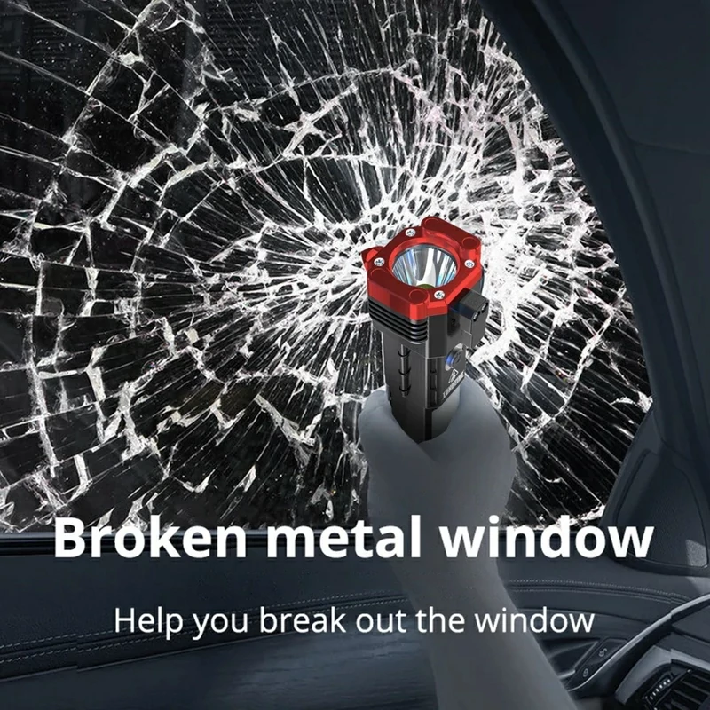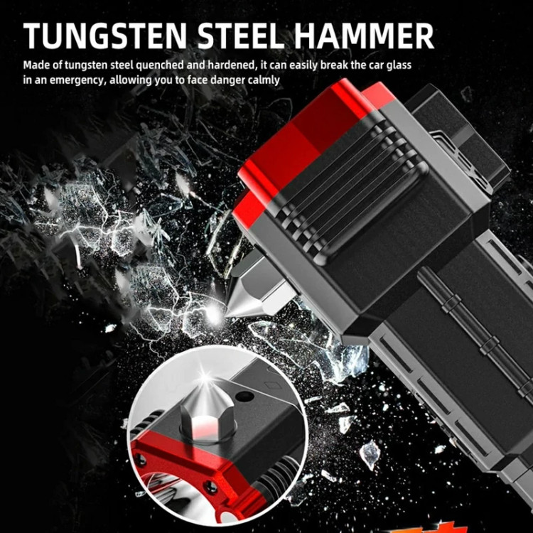 دارای تیغ برش کمربند خودرو و چکش اضطراری تعبیه شده بر روی بدنه