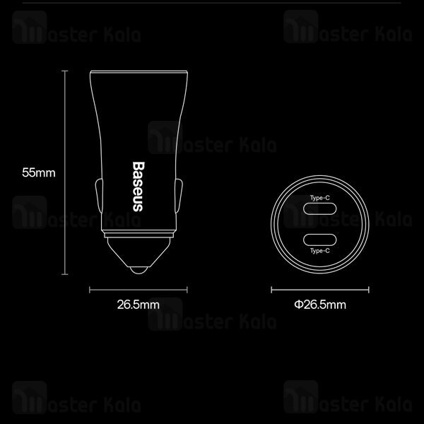 روی بدنه شارژر فندکی Baseus CGJP000013 دو پورت تایپ سی (Type C) تعبیه شده که می توانید به صورت تکی و یا همزمان از این دو پورت استفاده کنید.