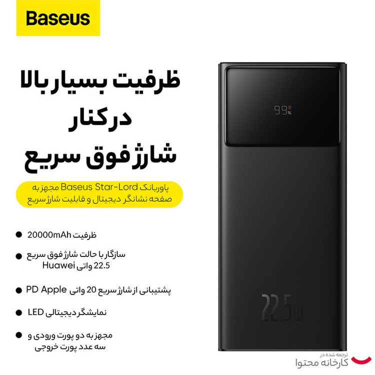 نوع باتری پاوربانک: لیتیوم پلیمری
