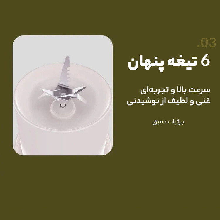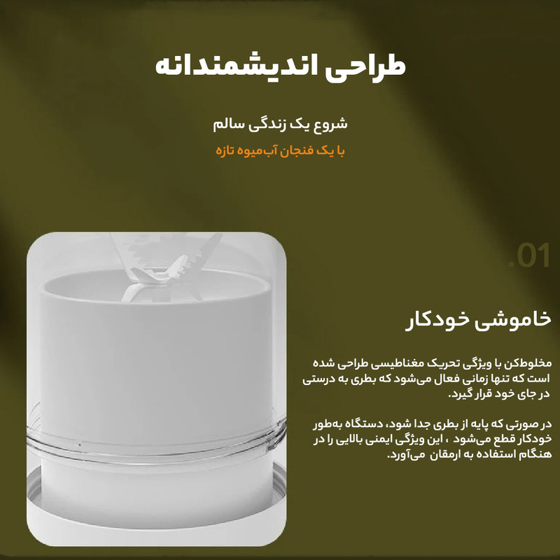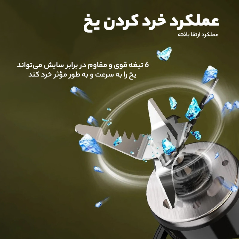 شارژ سریع قابل حمل بودن نحوه استفاده بسیار آسان نشت نکردن مایعات به بیرون از ظرف قدرت بالا و قابلیت یخ شکن