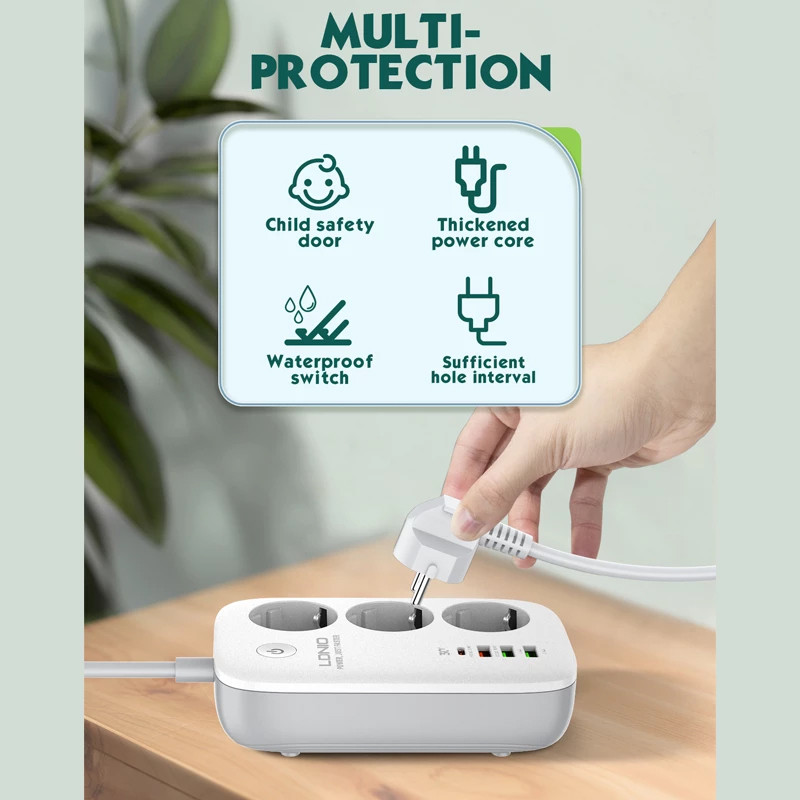 گروه تجاری LDNIO یک شرکت تامین کننده لوازم جانبی در جهان است که به عنوان یکی از بزرگترین تامین کنندهای لوازم جانبی الکترونیکی در جهان شناخته می شود. یکی از پر فروش ترین کالاهای این شرکت چند راهی برق الدینیو مدل Smart است. امروزه برای اینکه بتوانیم چند دستگاه را روی میز کار یا در منزل به برق متصل کنیم، نیاز به چندین پریز و درگاه داریم. استفاده از یک چندراهی با کیفیت علاوه بر اینکه نیاز ما به پورت های متنوع را رفع می کند، سبب مرتب تر شدن میز کار ما نیز می شود. برند الدینیو برای حل این مساله محصول چند راهی برق مدل Smart را روانه بازار کرده است که تقریبا تمامی افراد برای مدیریت وسایل الکترونیکی که به برق نیاز دارند از آن میتوانند استفاده کنند. بر روی بدنه ی چند راهی برق الدینیو مدل Smart سه خروجی برق، سه پورت USB و یک پورت تایپ سی تعبیه شده است و شما میتوانید به طور همزمان چندین دستگاه را با آن شارژ کنید.